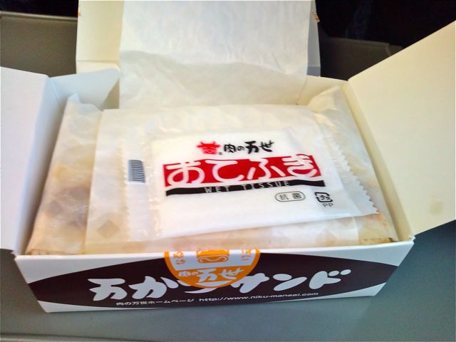 行きは、上野で肉の万世で発売してる万かつサンドを買って行った。