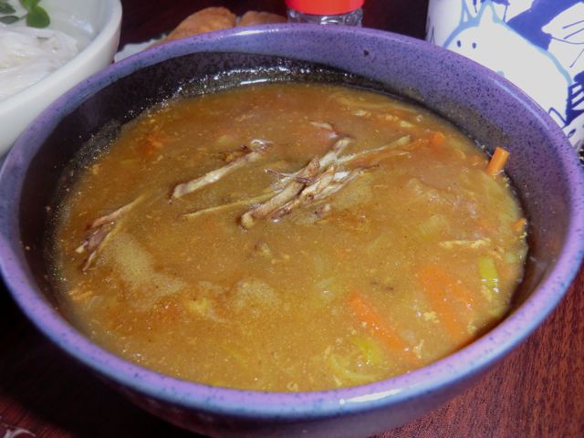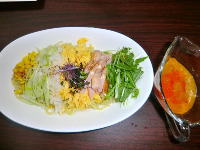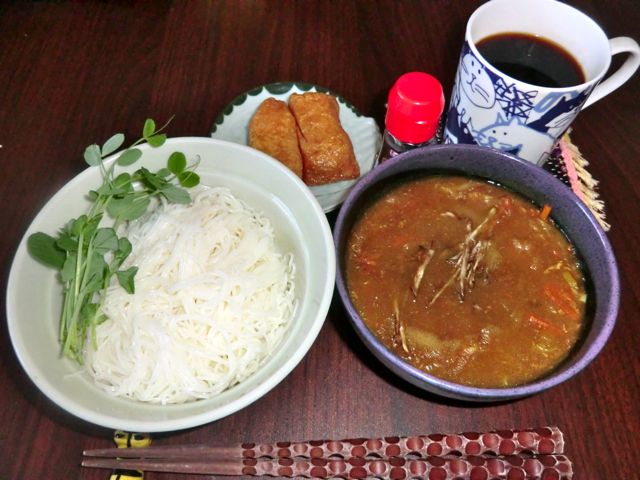 カレーとカツオだし風味の付けダレに、素麺をつけて。