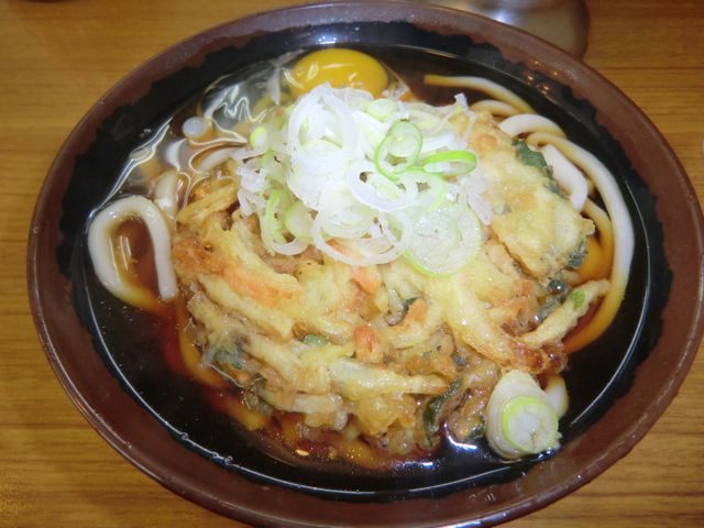 かけうどんにかき揚げ温泉玉子。