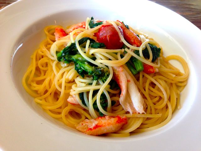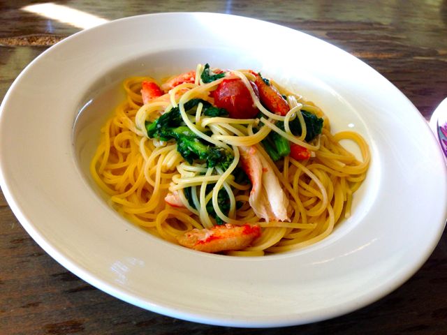 スパゲティーは、牡蠣と小松菜のバター醤油クリーム。