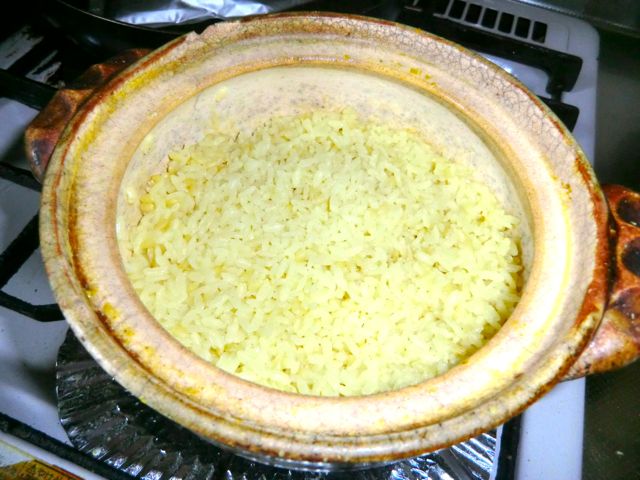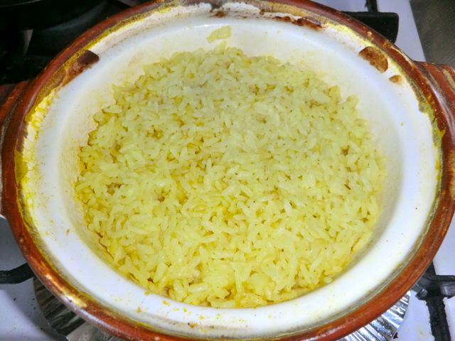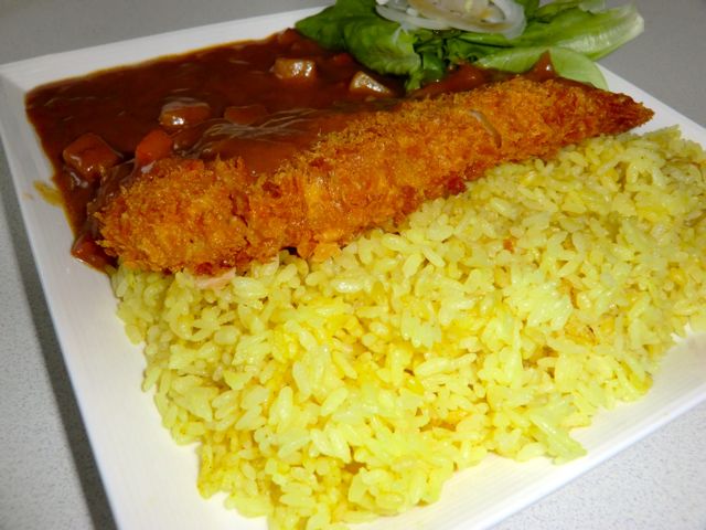 カレー粉を入れちゃって、ターメリックライス風にしてみた。