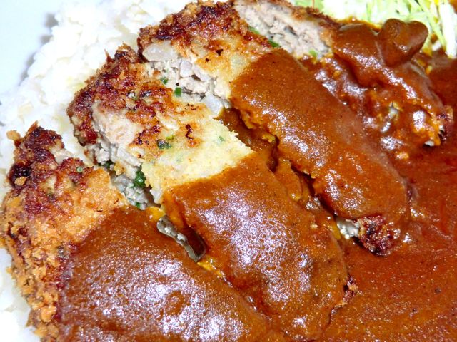 自作の生メンチを揚げないで、フライパンで多めの油で焼き上げた。