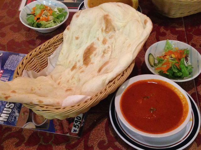 ナンは大きくておかわり自由はいいんだけど、肝心のカレーの味が本場に遠い。