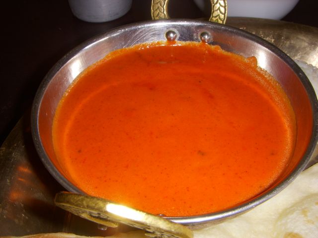 赤い香辛料が特徴的で、さも辛そうに見えるがそうでもない。