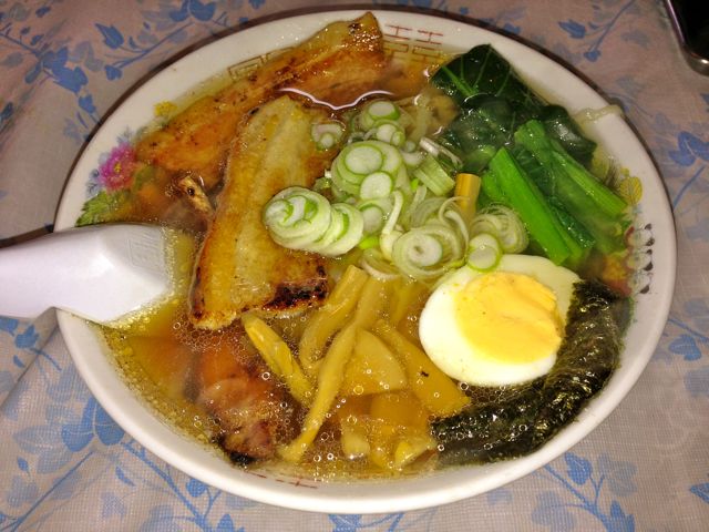 まずはスープ。鶏ガラベースのすっきりした醤油味で、少し甘みがある美味しいスープだ。