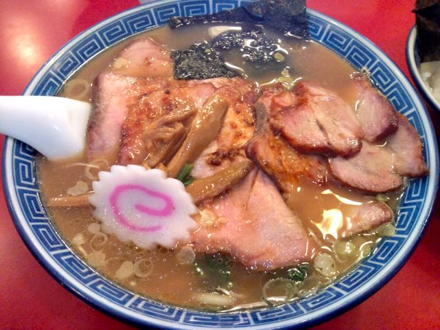 しかし、チャーシューはすげーうまい。チャーシューにかかってる特性のタレがまたおいしい。