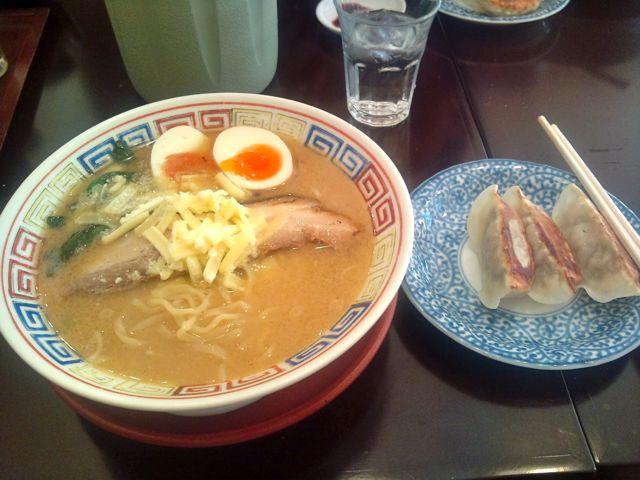 そんで、お勧めの味噌バターチーズラーメンとハーフ餃子を注文。