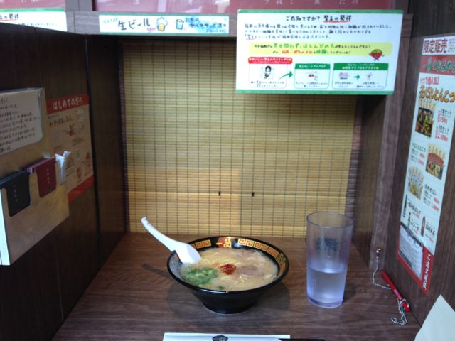 一蘭は一人食でその方がラーメンに集中できるというシステム。