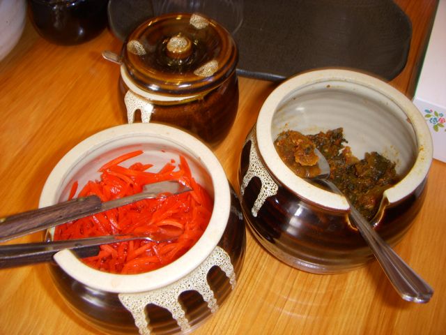 薬味もそこそこある。高菜の辛し和えはちょっと辛いので注意。