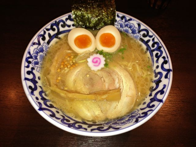 ラーメンが来た時は、ぜんぜんわからなかったが、後で写真で見て見ると、なんだか顔に見えるんだよね~(笑)