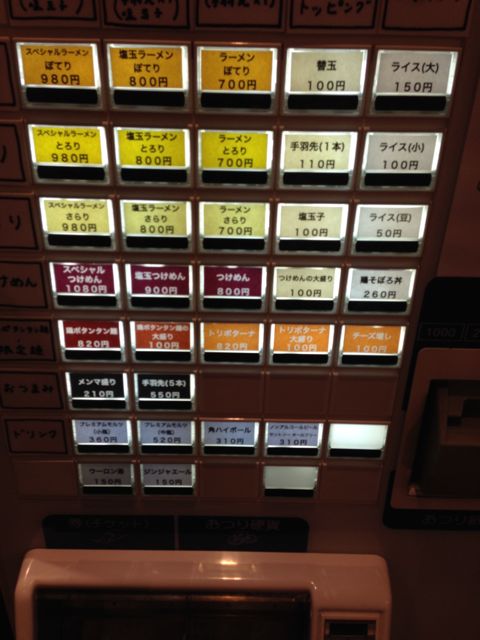 まず、券売機がさっぱりわからない。縦にみていくんだよね…それで濃度は横を見る…