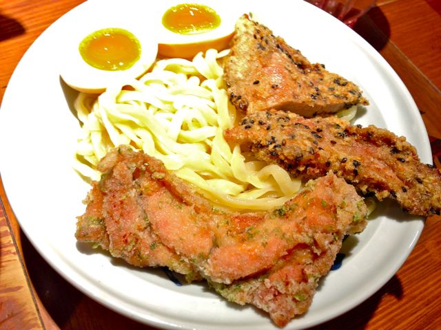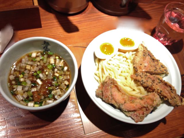 つけ麺は、魚介とのバランスの取れたつけダレに、平打ちの麺。