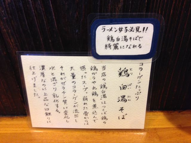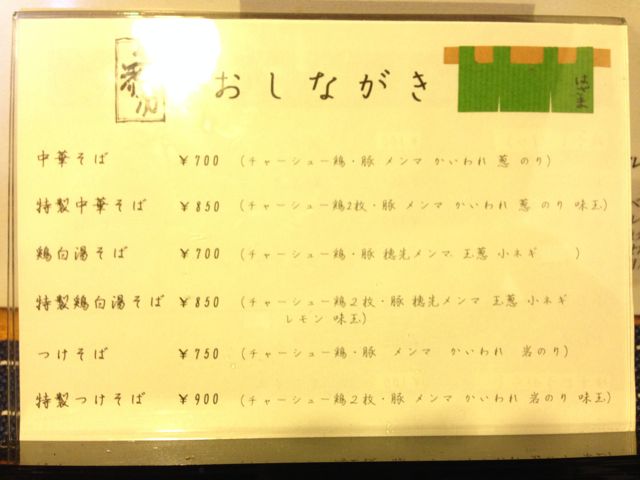 鶏白湯の方は、基本を確認してからと注文しなかったが、こちらの方がどうも評判が良いみたい。
