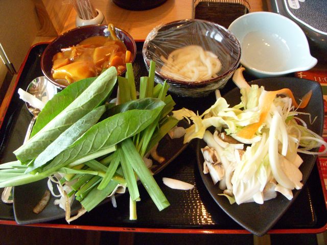 食べ放題は、野菜類と、うどん、ご飯、カレー。十二分だ。