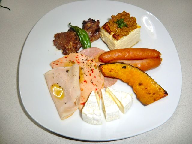 ★ハム3種、カマンベールチーズ、牛肉の味噌漬け、ソーセージ、焼き豆腐のごぼう味噌かけ、