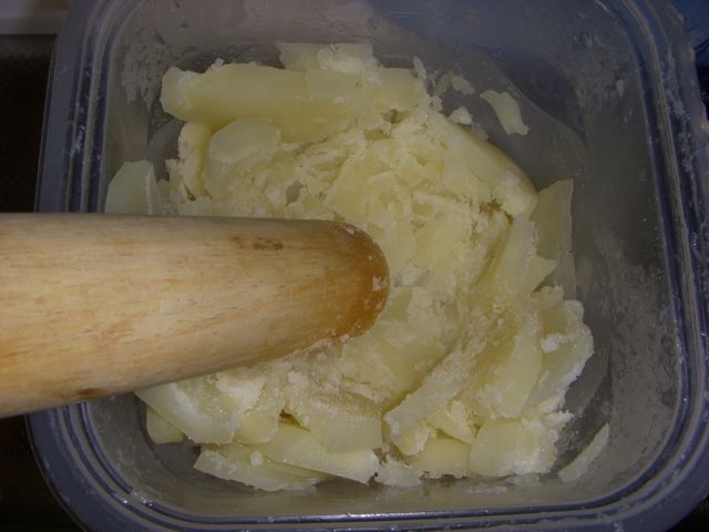 水気を切ってそのまま、マッシャーなどで押しつぶす。