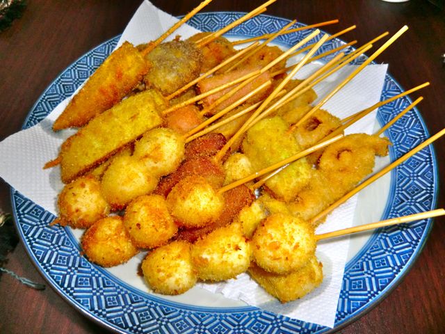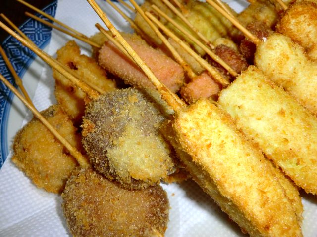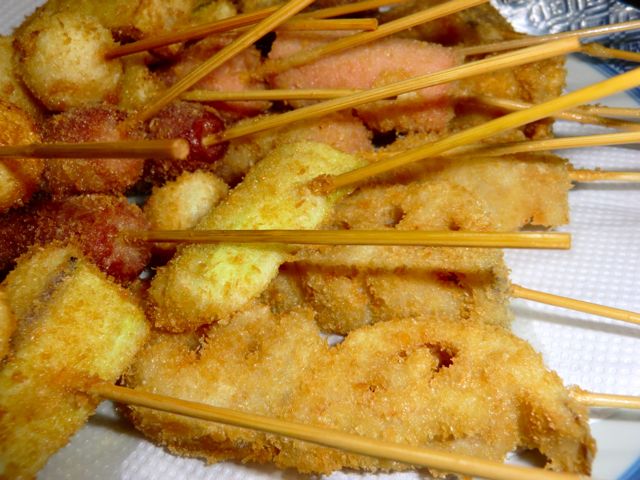 ドロに、串に刺した具材をくぐらせて、パン粉をつけて揚げるだけです。