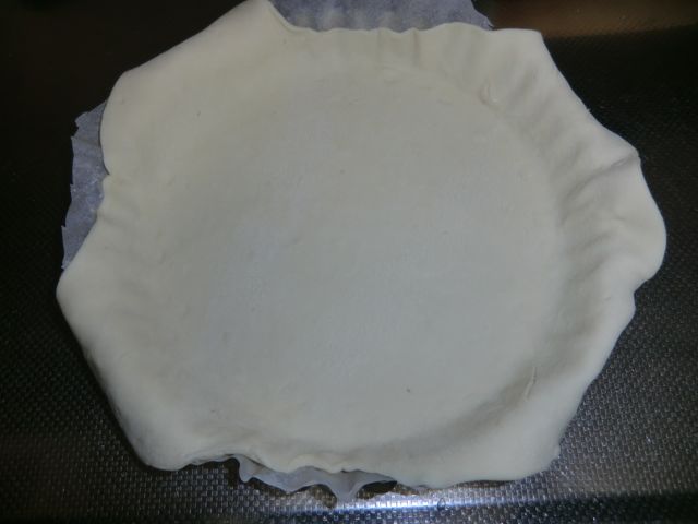 7、生地でふたをして、ヘリをフォークで押し付けて模様をつくります。