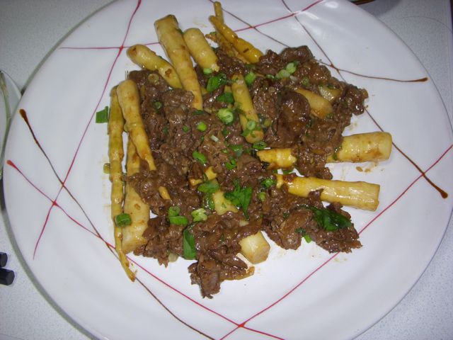 俺はとりあえず、チキンコンソメで姫竹を軽く茹でてから牛肉と合わせて作った。