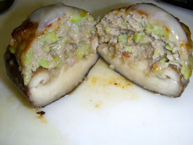 この時に、椎茸が水っぽく水分が多いと、ハンバーグが外れてしまう事があるので、気をつける。