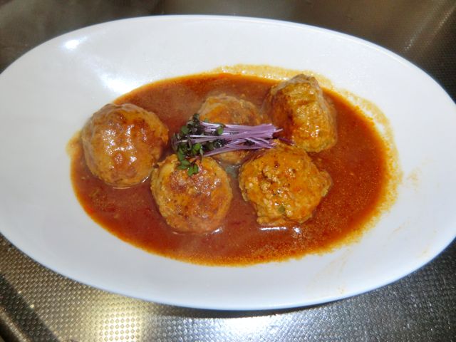 これは、100円スパゲティー用トマトソース缶を使った。それに水、鶏ガラスープのもと、ケチャップ、ソース等を加えてお好みの味にしハンバーグが漬かるくらいの量にする。