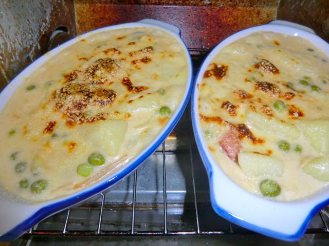 今回は、生クリームが無かったので、正統的に小麦粉をバターで炒め、牛乳を少しずつ加えてとろみをつけた。