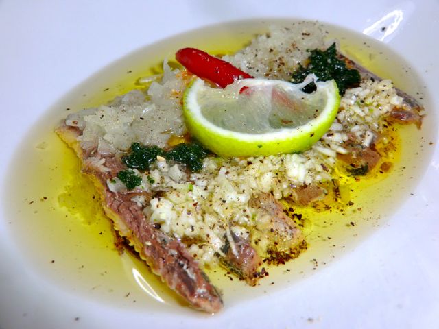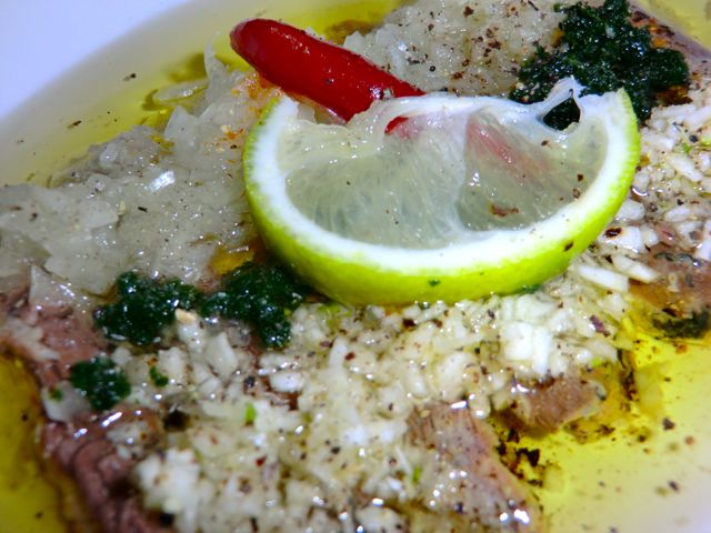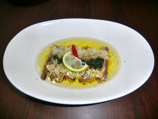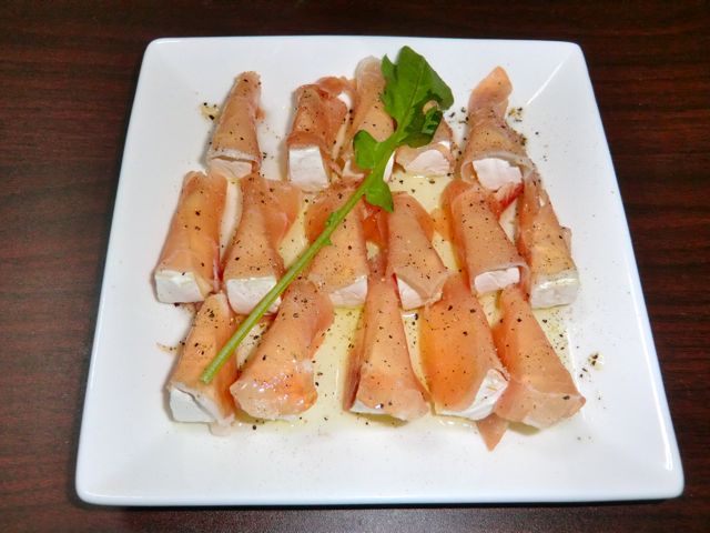 オリーブオイルをまわしかけ、黒こしょうを振ってます。