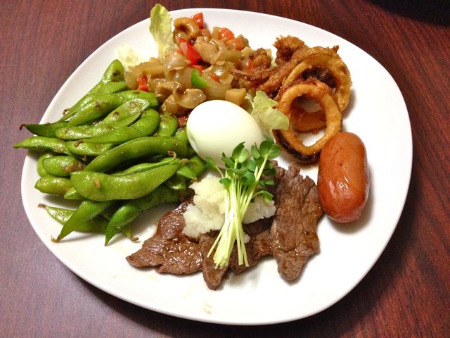 枝豆は、冷凍物をガーリックでいためたハワイ風枝豆。