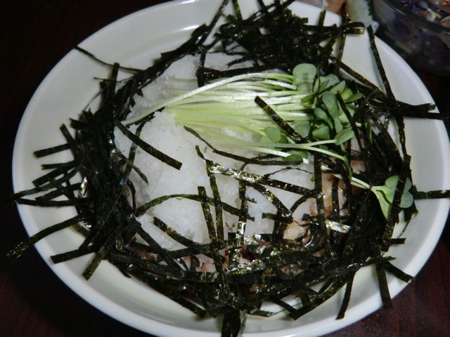 その上に刻み海苔を振りかけ、大根おろしをのせる。