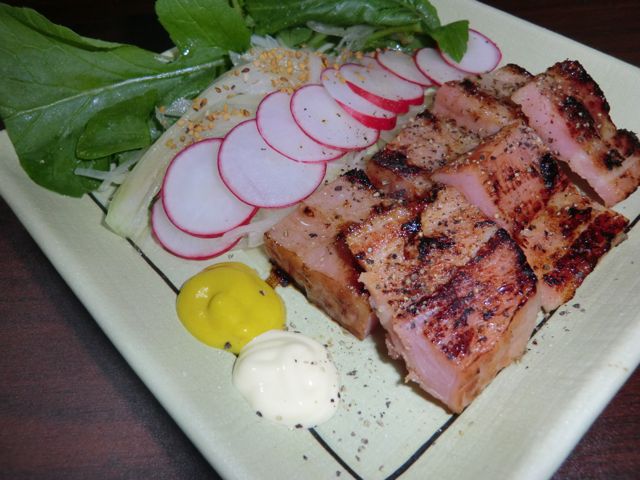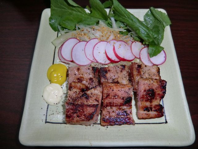 焼きベーコンはどんなお酒にも合って、いいつまみになります(笑)