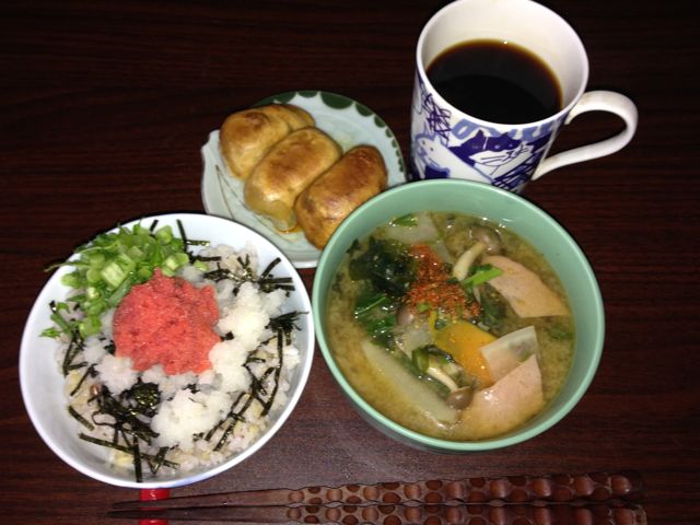 大根おろしを作り大根の葉を刻んでごはんにかけて、明太子を乗せただけのものだが、かなり