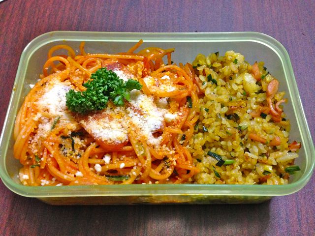 たまにはと思って、カレーチャーハン弁当にしようかと思ったが、気持ち的にナポリタンが