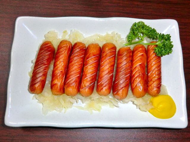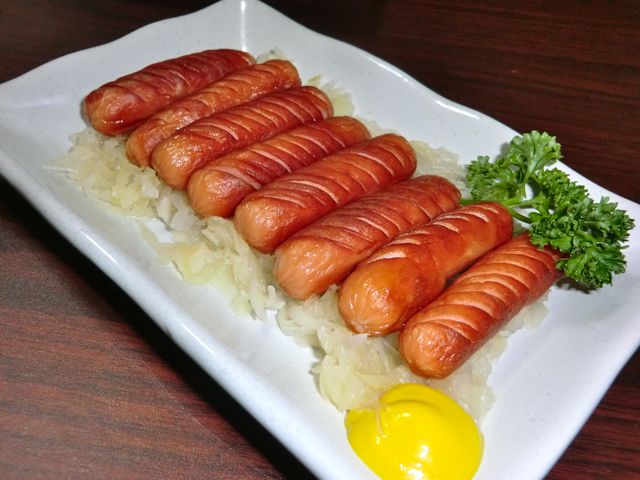 キャベツ、玉ねぎ、ジャガイモ、カボチャ、椎茸、ソーセージ、ゆで卵。