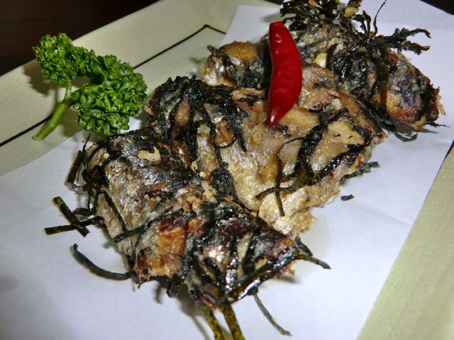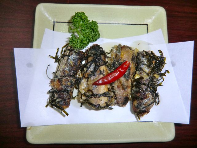 オイルサーディンの天ぷらに海苔をまぶしただけなんだけど…