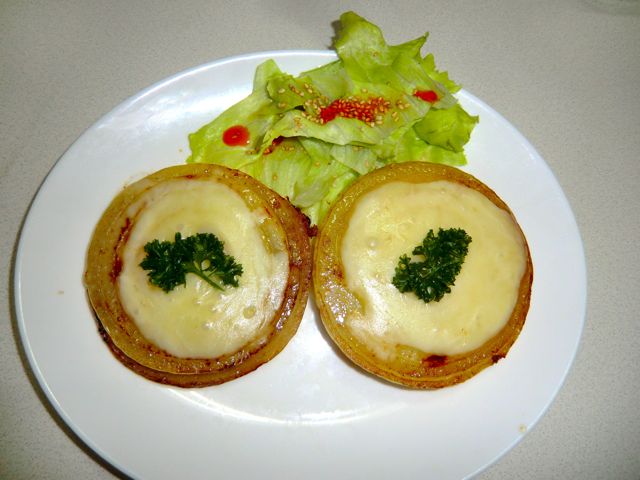 玉ねぎを焼いただけのもの。フライパンで焼いてから最後にチーズをかけてオーブンへ。