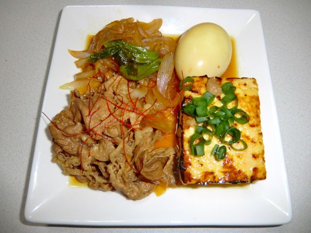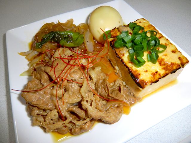 すき家で肉皿を買って来て、肉豆腐を作った。