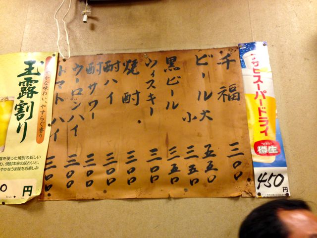 つまみや飲み物はみな300円という、かなり安くておいしいお店。