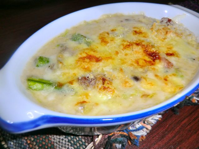 薄くたたいた鶏肉でハムやチーズを包んだフランス料理。