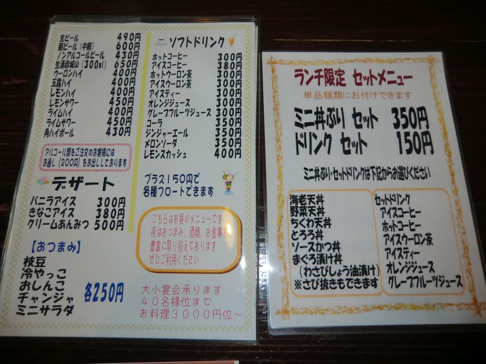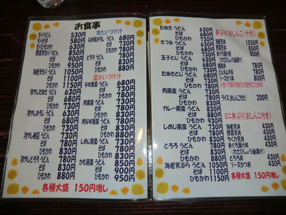 ただの街のうどん屋って感じで、たくさんのメニューがある。