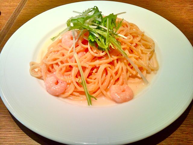 小エビとアスパラのクリームは、まずクリームのコクがない。牛乳かと思わせる軽さ。