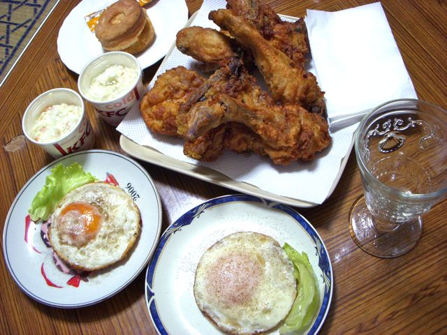 いま、いろいろセールをやってるんで、今日は子供達がいないから、6ピースを買ったのだが、おまけにサラダ、クリスピー、ビスケットから3つ選べて、けっこうお得感があった。