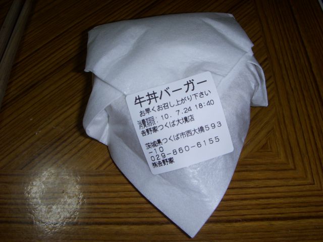 筑波山登山に行く道で、つくば大境店限定の牛丼バーガーなるものを発見し、帰りに寄って購入した。