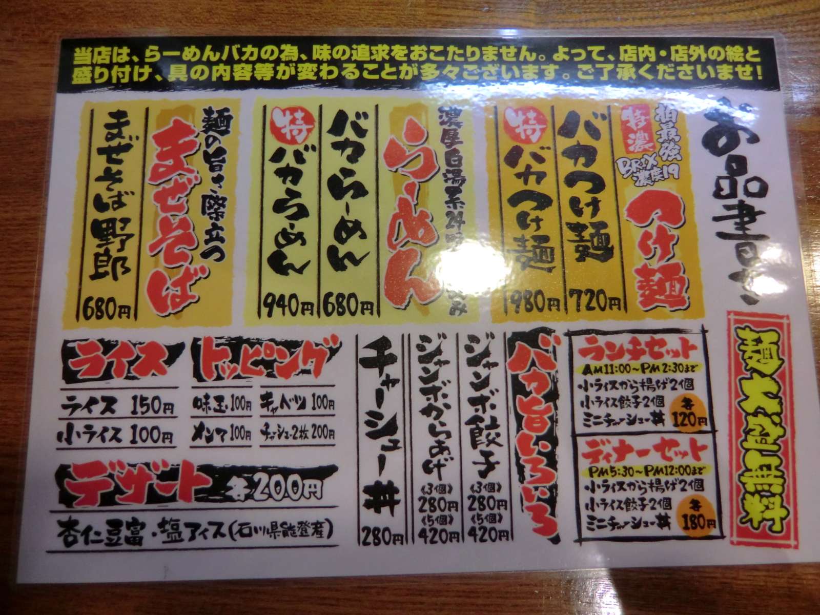 さて、今回はラーメンの方が好きなので、バカラーメンを注文した。