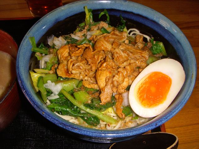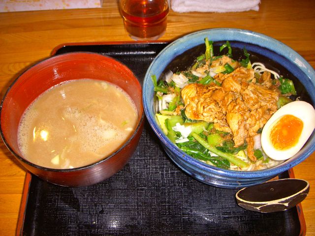 このラーメンは、汁無しそばとつけ麺を合体させたおもしろいもので、味噌で味付けされた豚バラが、量も多くのっていて、これはかなりいける感じだった。