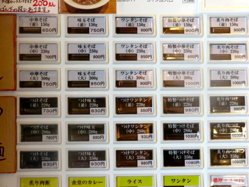 ノーマルのワンタン麺の食券を買った。