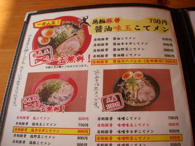 ここのラーメンは博多豚骨っぽい感じで、そういった種類のメニュー構成だ。