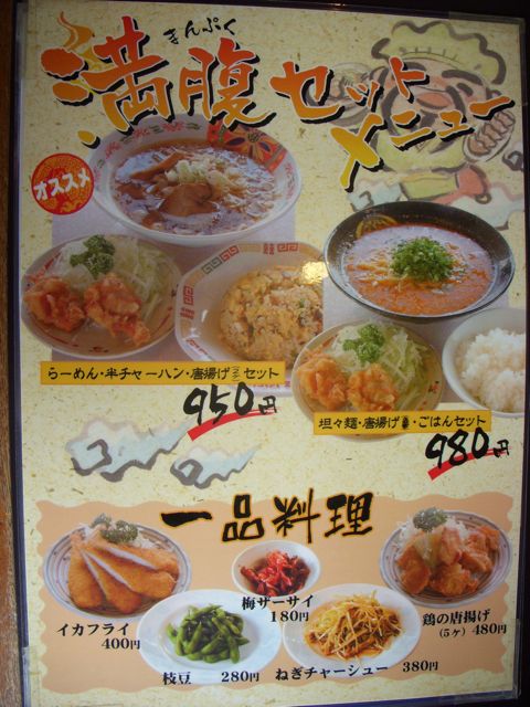 ちょっと値段がお高いか…と思ったが、日替わり定食もあり、なんと、野菜炒め定食に普通のラーメンがついてるセットを、還暦くらいのおばさんが注文してて食べていた…すごいパワーだ。