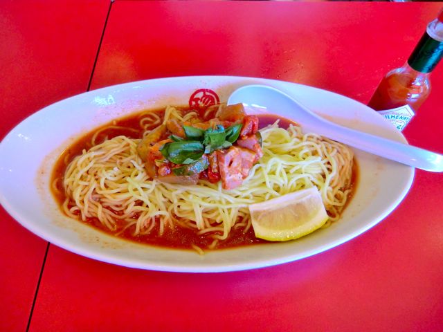 麺は細めんのたまご麺だと思う。冷やし中華のものとおそらくいっしょだ。