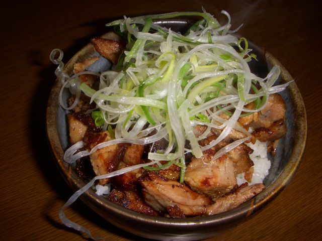 豚丼は焼豚をチョイスしたが脂分が抜けて乾いてぱさぱさになっていて、おいしさが半減。