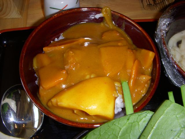 食べ放題は、野菜類と、うどん、ご飯、カレー。十二分だ。